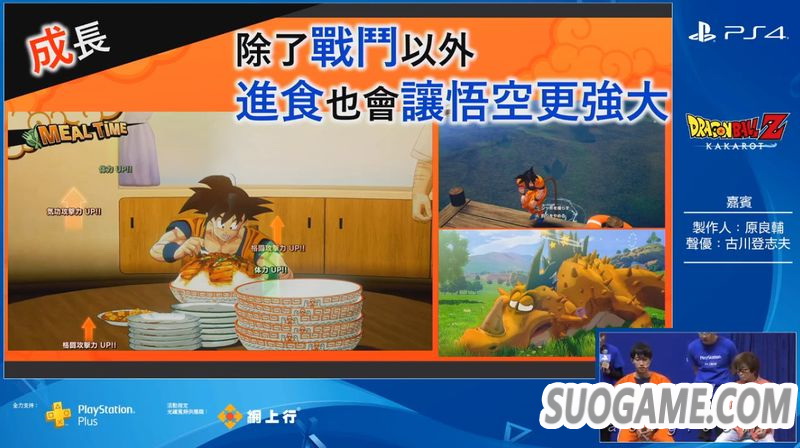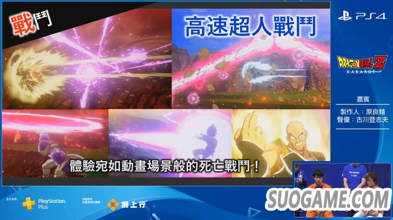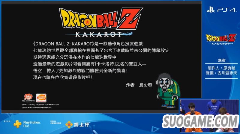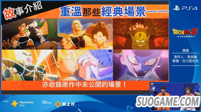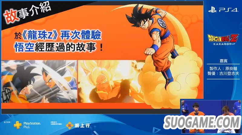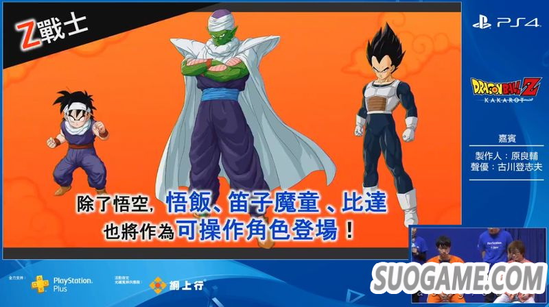 在ACGHK 2019现场,《七龙珠Z 卡卡洛特》制作人原良辅和比克的声优古川登志夫带来了本作的中文版演示。其中展示了比克对战天津饭+饺子的支线任务以及比克对战变身巨猿的悟饭剧情。制作人表示,在本作中除了悟空之外,玩家还可以操控悟饭、比克、贝吉塔等人。