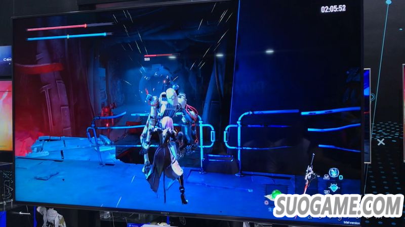在试玩DEMO中可以按下OPTION进入菜单界面,不但进行武器更换,头部、躯干、腿部与手部都可以进行更换。武器已经默认装备了一把绯暗枪刃,还有另一个空槽可以装备其他的武器。虽然制作人曾提过DEMO中可以切换其他的武器,不过我在试玩途中没找到准确的方法。此外,根据制作人的介绍,这款作品并不准备加入等级,而是专注于装备的成长。在战斗时不像魂Like游戏一样消耗体力槽,可以通过不断的切换武器来衔接不一样的动作,以达成爽快的动作体验。