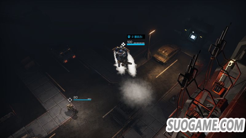 试玩版上来给了四个职业士兵和一辆车,场景在一个半开放式的电厂。老实说,这地方地形可真够复杂的,主体车间有好几层,你要想玩的刁钻点,上来就可以往上爬,但风险也特别大,因为敌人可以把建筑炸掉。我第一次试玩,就别提成绩了,我就单纯想熟悉熟悉系统。于是我干脆就往里冲,找几个箱子之间的豁口蹲B,静观其变。一开始这招还挺奏效,但当我确认敌人也是上帝视角的时候,蹲B这招就把我给害了。这个游戏中的敌人不那么木讷,它没看见你、或者跑不到能直接开枪的角度,它会先往你这边扔手雷。这咱哪顶得住啊,一两颗就罢了,我再扔回去,要命的是这关的小Boss也是个投弹手,它全屏扔雷,有时候扔的还挺准。霹雳啪来一回合下来我这就成战地医院了。