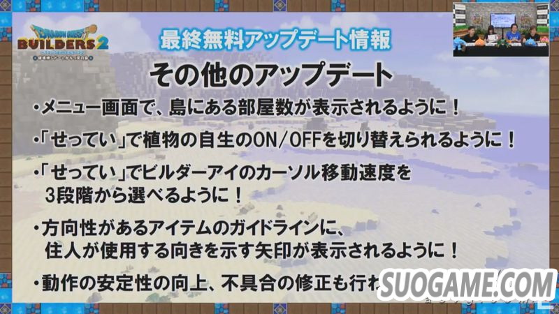 在今日的DQB2最终免费更新介绍直播中,开发组介绍了本作的最后一个免费更新。本次更新将于北京时间8月20日进行免费更新,详情如下: