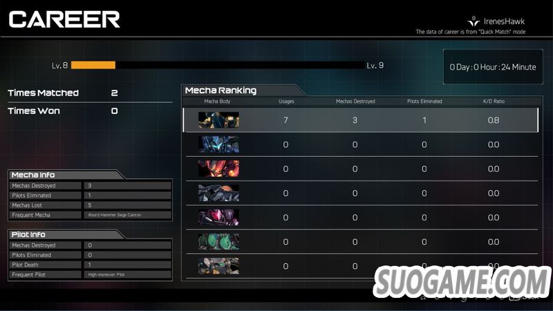 - 多人模式,新增生涯数据统计界面。玩家可以在此查看自己使用各机体出击次数和战损比等数据,这些数据会从本次更新正式上线之时开始计算,仅记录快速匹配比赛。
