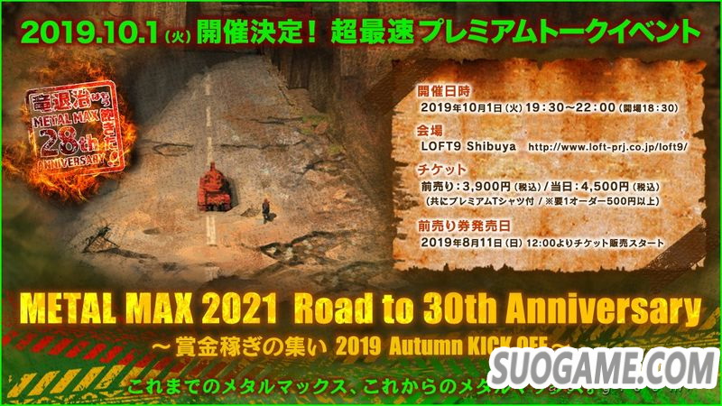 角川游戏宣布将于北京时间2019年10月1日在东京举办《重装机兵》主题活动「METAL MAX 2021 Road to 30th Anniversary ~賞金稼ぎの集い 2019 Autumn KICK OFF~」。