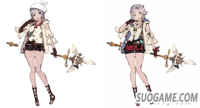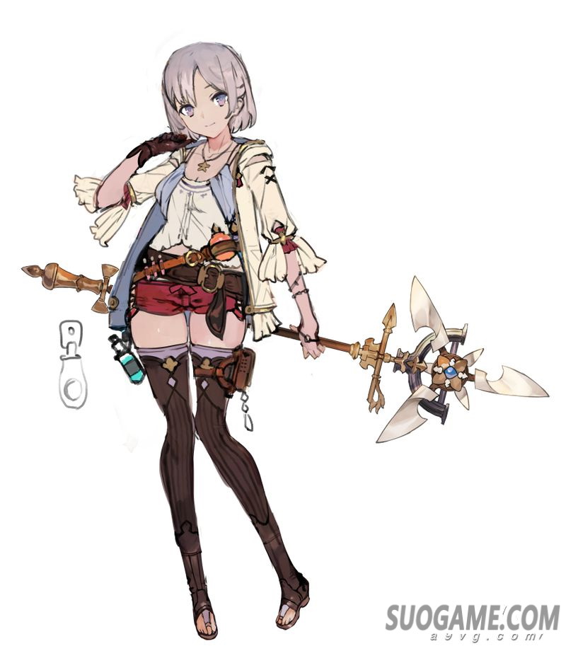 首先就是女主角莱莎。莱莎最初的设定是“农家的女孩”,而トリダモノ最初设计出的角色有一些男孩子气,并且相比大腿更强调胸部。