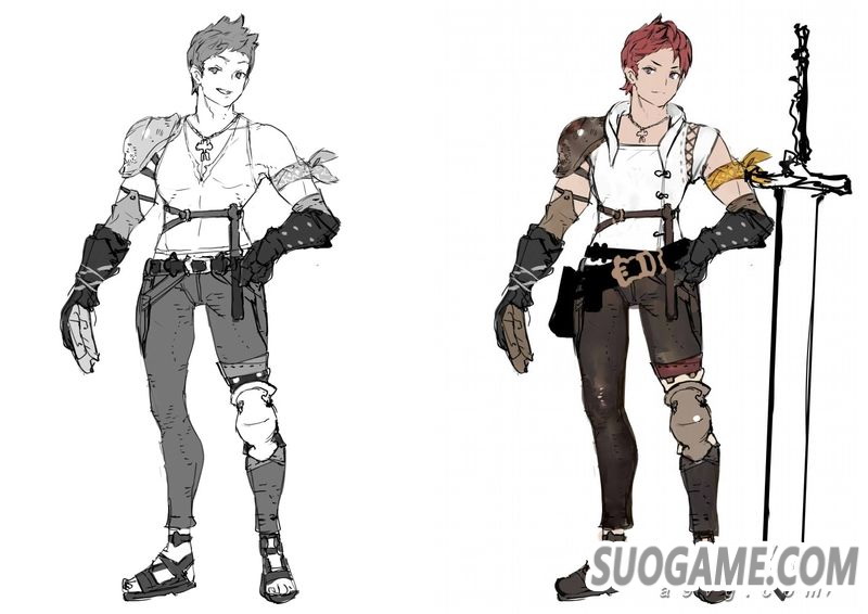 随后又对服装进行了数次调整,比如考虑到是夏季出现过腿部全部露出的版本,并且配色方案也考虑了特别多种。