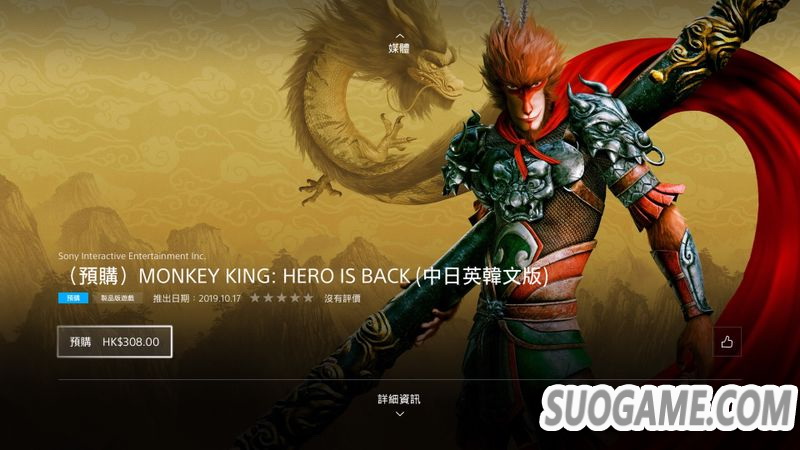 《大圣归来》于今日在港服PSN上架了预购界面,界面显示本作将于北京时间10月17日正式发售,此次预购包含三种版本,后续DLC将包含《大闹天宫》和《魂之炼狱》两款预计将分别于11月和12月推出。