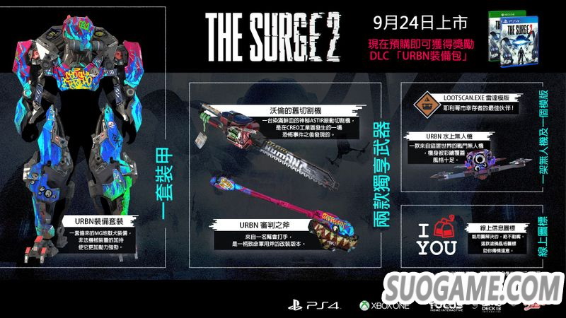 今日Deck13工作室与发行商Focus Home Interactive宣布《迸发2(Surge 2)》已经开始进厂压盘,并公开了一段收录各个媒体先行评价的宣传片。本作将于北京时间9月24日登陆PS4、Xbox One和PC平台,支持简体中文。