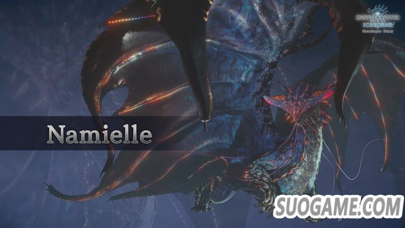 怪物——我们可以看到碎龙、硫斩龙(斩龙亚种)、冰牙龙、冰呪龙的战斗画面,以及全新的古龙“Namielle”(中文名待定),它是一只可以操控水的古龙,目前还没有更多消息放出。开发者希望为《Iceborne》带来更多元素主题的古龙,比如冰呪龙是以冰为主题,而这只全新古龙则是以水为主题设计的。
