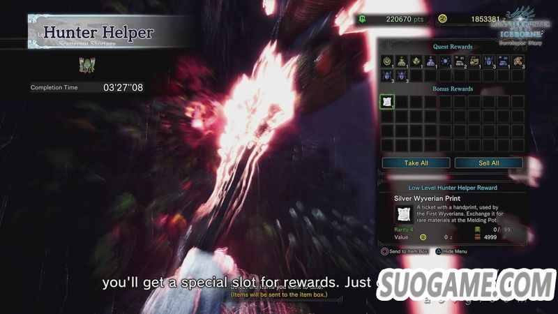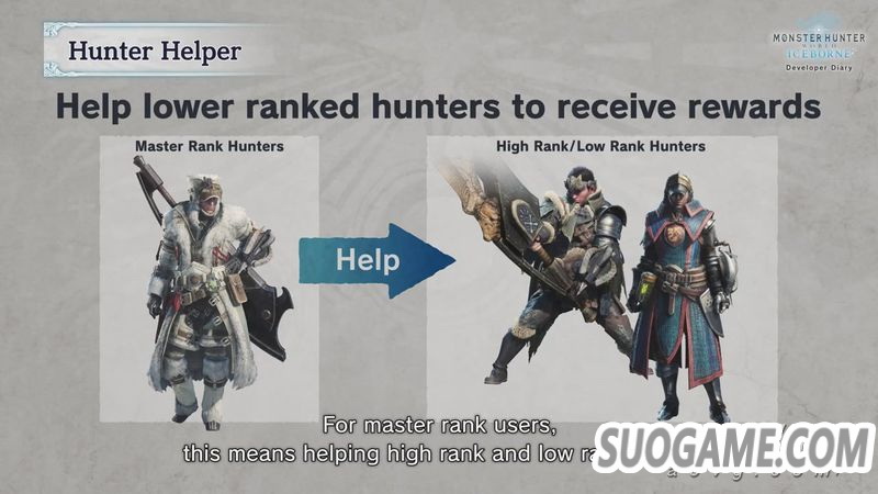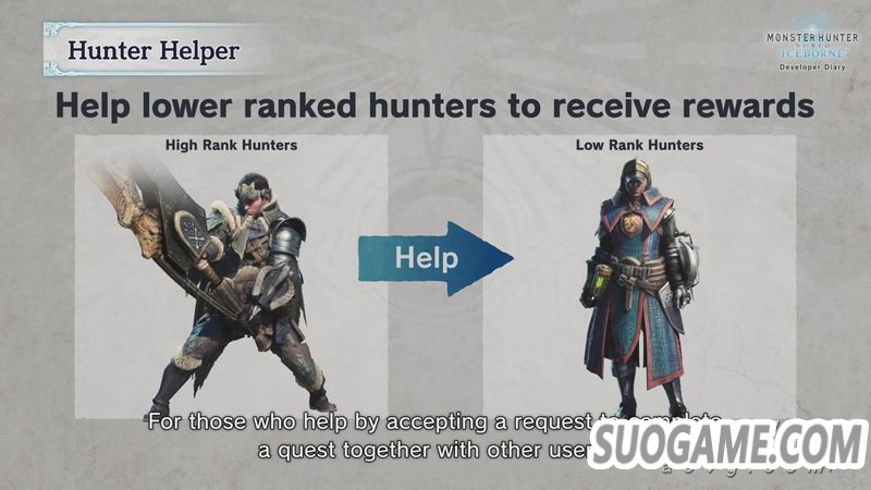新机制Hunter Helper——Master Rank的用户帮助下位和上位的用户完成任务后可以得到一个奖励,获得的奖励取决于猎人等级。帮助玩家还能获得挂在武器上的吊坠(没有任何能力提升),它有一个相关的奖杯。当然除了帮助新手之外还有其它方式来获得吊坠。
