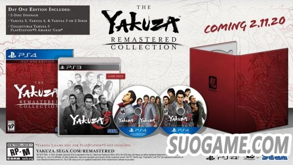 SEGA正式在欧美地区公布了PS4《如龙 高清合集》,内含2张光盘收录《如龙3》《如龙4》《如龙5》三款游戏的高清版,预定于2020年2月11日发售,定价59.99美元。