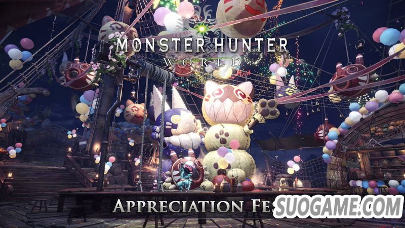 《怪物猎人世界》目前正在举办的连续5周大型庆典活动,今天开启最终回“感谢之宴”,除了全部任务回归外,通过完成活动任务还可以获得全新的“烟火(感谢)”和“感谢票”,可用于打造丰收祭期间限定的【盛装】套装外观和【巨星猫】随从猫装备。另外距离主机版《怪物猎人世界 Iceborne》发售还有14天(年),PC版将于北京时间2020年1月推出。
