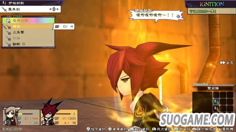 战斗中会有一定的概率增加指令的威力或习得新指令的「觉醒」系统,还有在战斗中取得的天赋点数可提升角色能力值的「资质」以强化角色。想以更快的节奏游玩的话在战斗中输入特殊键就能以最大四倍速进行战斗。