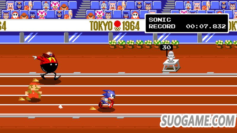 【1964东京竞技项目「100米跑」】在1964东京奥运竞技中,可以操作怀旧的点阵角色进行游戏。
