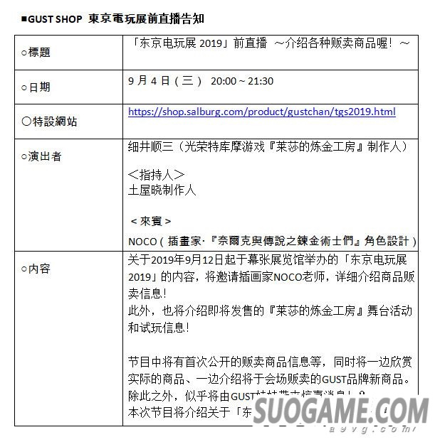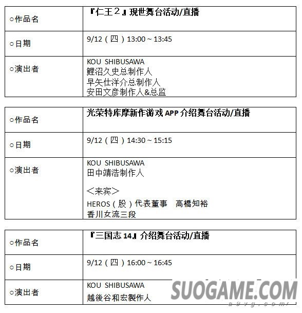 另外,部分作品的舞台活动观赏将采事前报名制(抽选),即日起于光荣特库摩TGS2019特設网站(https://www.gamecity.ne.jp/tgs/)上开始受理报名。