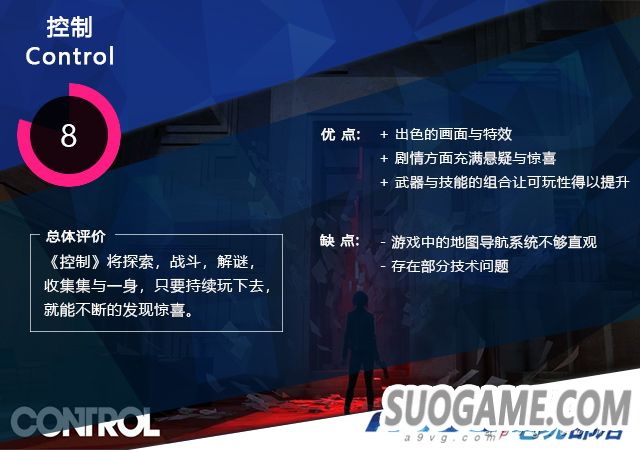 Remedy在《控制》中继续发挥制作组善于叙事的优点之余,也在提升可玩性方面下了一番功夫。“银河城”式的游戏推进方式让笔者倍感亲切。《控制》将探索、战斗、解谜、收集、强化集于一身,为玩家们提供了丰富的游戏内容。开头慢热的节奏以及前期一口气塞过来的专有名词或令人感到烦躁,但只要持续玩下去,就能不断地发现惊喜。
