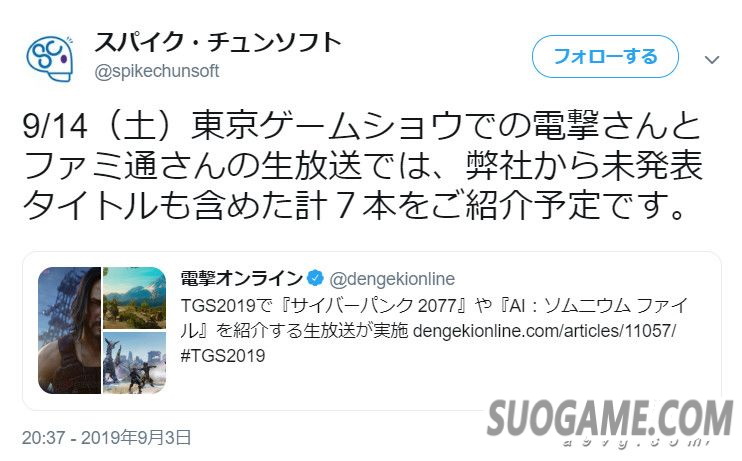 在9月14日电击xFami通联合直播中Spike Chunsoft将介绍七款作品,其中包含《赛博朋克2077》、《AI 梦境档案》、《巫师3 完全版》、《神界原罪2 决定版》和《堡垒》,其中既有Spike Chunsoft自家作品也有他们代理发行的欧美大作。