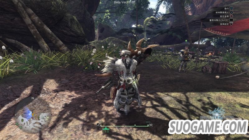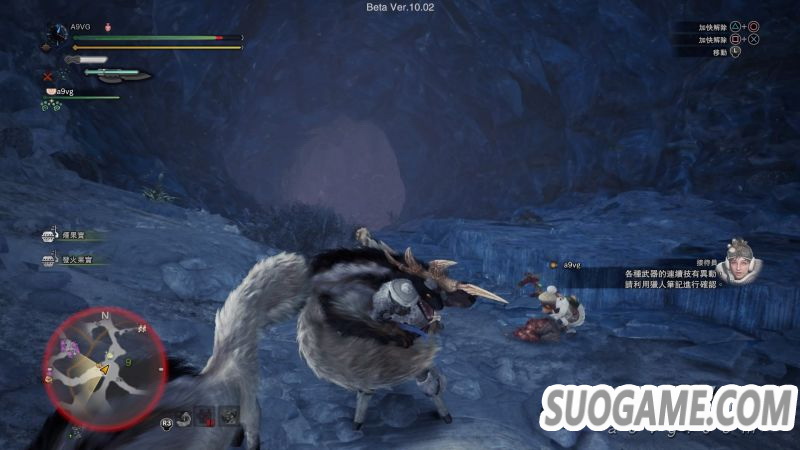 在跳跃中可以使用的飞翔爪攻击(R2+X腾空后→L2)。命中大型怪物后可以进入抓取状态。