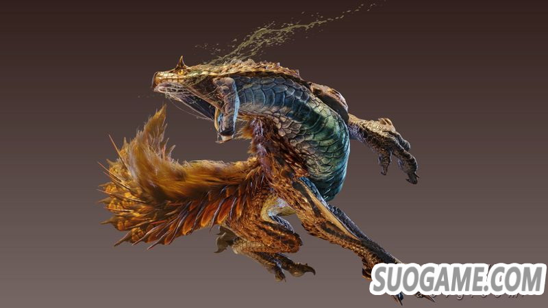 于新大陆瘴气之谷的地下湖区域发现的兽龙种怪物斩龙的亚种形态,因为长期处于强酸的环境中,其身体机能已经熟悉了这种环境下的行动模式,和原种不同的是因为环境的原因,硫斩龙衍生出了更多的不同生存方式,并将这种强酸运用到了自己的战斗中,因为长时间浸泡在酸液中其尾部已经完整地融合进了酸性物质,这也让硫斩龙在脱离酸液一段时间后尾部会出现明显的结晶块,这种结晶附带酸属性本身的侵蚀效果,可以有效地侵蚀掉对手的铠甲乃至身体,当其研磨尾部后因为结晶的消去,硫斩龙将失去削弱防御力的能力,但换来的就是更加灵活的战斗力。