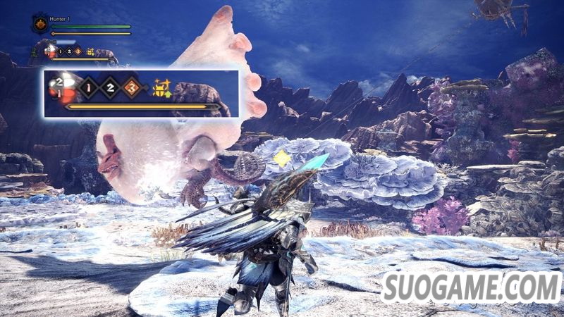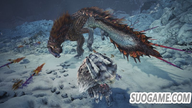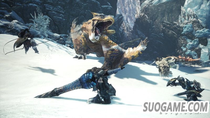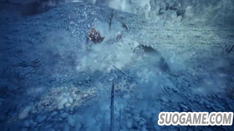 雪崩,类似古代树森林的火龙巢穴,累积到一定伤害后会触发大雪崩,使用恰当可以对怪物造成大量伤害