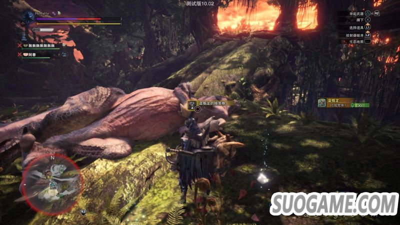 跳跃过程中使用的新派生技能(R2+X腾空后→R2),落地后的攻击可以造成部位的印弹效果,若此时猎虫还在手上(未发射),则可以让猎虫追加攻击。