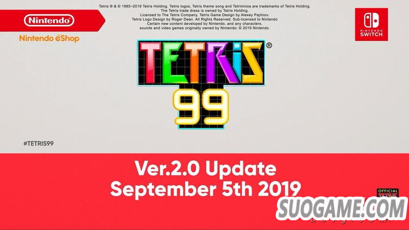 《俄罗斯方块99》将更新2.0,更新VIP房、支持本地对战、每日挑战等新要素,今日开始更新。9月20日会退出一个包含本体、DLC、Switch Online会员的实体版。