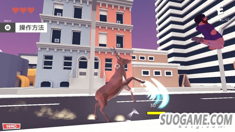 这只「非常普通」的鹿哥是两脚行走又能随意伸缩脖子,又可以利用鹿角做利器,完全是一只独特有个性的鹿在街上横行霸道。简单介绍本游戏的话,《非常普通的鹿》是要在这"慢生活城市中大肆破坏的游戏"。