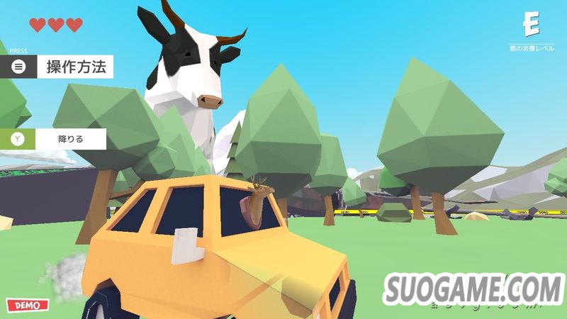 在这游戏世界,跟城里的其他动物一起享受美好时光,彻底摧毁小镇的一切,撞飞汽车,喷火摧毁建筑物等。随着破坏城市「鹿哥灾害LV」会升级。当然,最终会被警员追捕,被抓着接下来的命运可是特别悲惨的喔!游戏中的音乐,登场角色等,在游戏世界中自由超现实的气氛下,整个体验都能令大家轻松尽情欢笑。