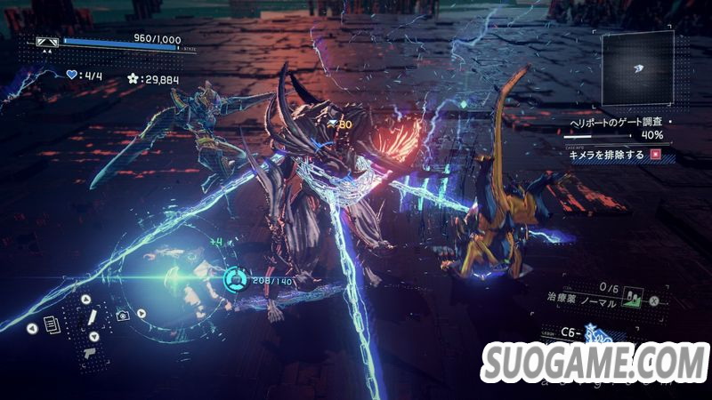 还有一个不得不提的是和雷基恩的同步攻击,在攻击的时候出现闪光的话按下ZL,就可以发动雷基恩的同步攻击。这个同步攻击几乎做到了每个动作部分里,在不同的条件下发动的同步攻击也不一样。最基础的就是普通攻击的连段之后跟的同步攻击,此外在进行束缚、瞬击的时候也可以触发同步攻击。我个人最常使用剑式在瞬击之后接续的同步攻击,可以将敌人顺便束缚起来。不同的雷基恩在不同的条件下,使用的同步攻击的性能和效果都会有不同的变化,在动作性的钻研方面有着非常大的空间。