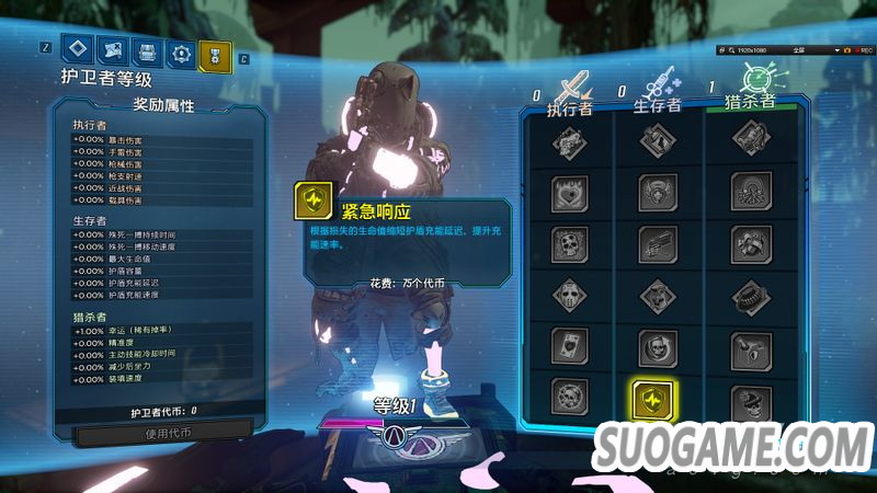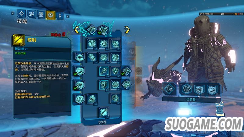 和以往相对固定的职业定位相比,《无主之地3》在角色的成长选择上明显有了更高的自由度,角色不仅拥有了三个主动技能可供选择,每个技能的特效和形态都能在投入一定点数之后发生变化。以兽王FL4K为例,“大师”天赋树偏重于加强宠物的伤害;“潜行者”天赋树会提升移速和生存能力;“猎人”天赋树则是追求输出的最大化……提升一定等级之后,宠物不仅在外形上会发生改变,也会拥有不同的加成和伤害效果。笔者在35级时打通了主线,此时的技能点数暂不支持同时投入两条技能树,不过游戏允许在换装站随时洗点,费用也非常低廉,试验新构筑的过程几乎没有额外的成本。