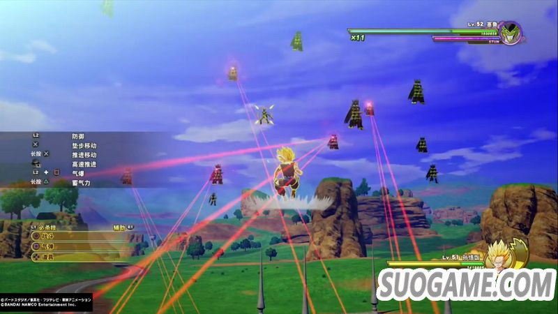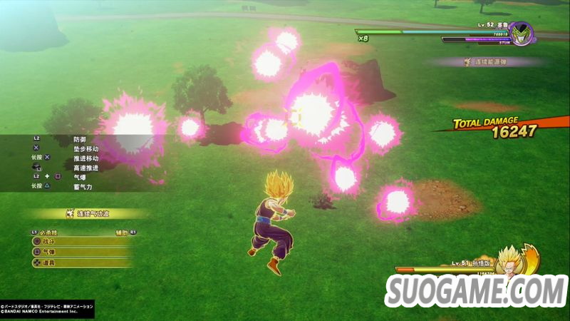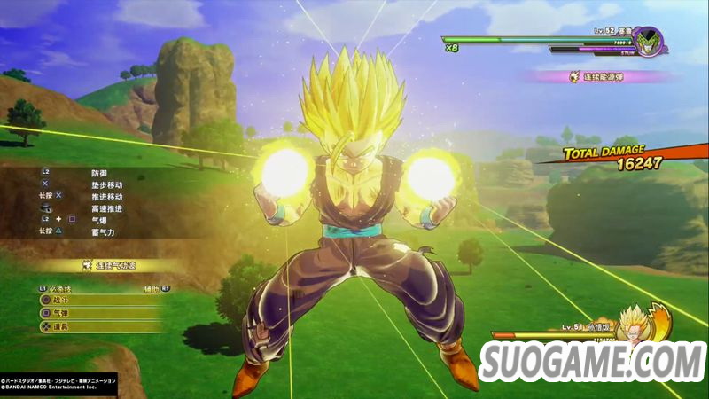 按下L1的话,则可以进入慢动作状态,搭配?/□/△/×键可以发动设置好的必杀技,在试玩版里预设的而是龟派气功、龙槌拳、感应魔闪光与连续气功波,正式版中能搭配的种类应该非常多。