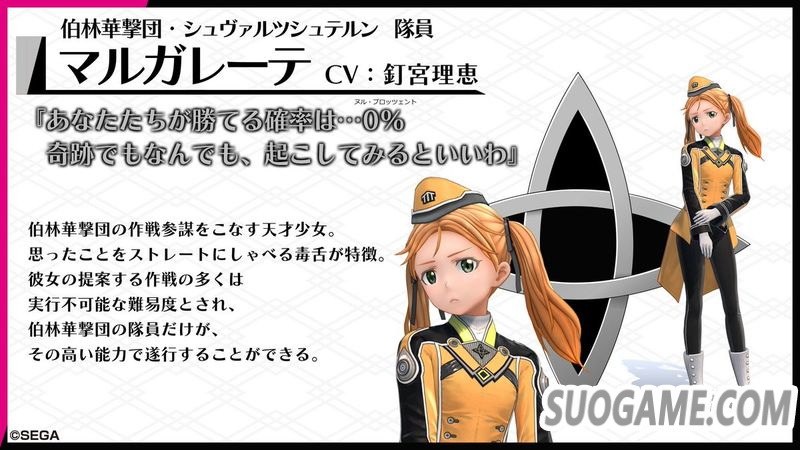 说到德国?柏林,便会让人联想到充满魅力的军事机械师与高科学力。在『樱花大战』系列中也是实行了各种计划的最先进的都市。本作的柏林华击团,便如上述特征所述,拥有强力的灵子战斗机,以最强华击团的身分阻挡在花组的面前。
