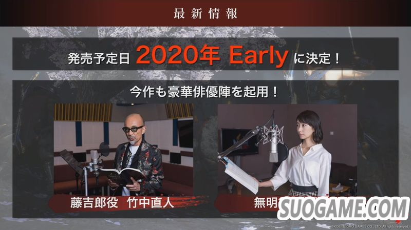 《仁王2》在TGS 2019直播活动中公开了一段实机演示,展示了众多新要素和马头鬼Boss战(然而落命)。著名演员竹中直人和波瑠确定参演,襟川阳一、鲤沼久史、早矢仕洋介都来到了演示现场。本作将于北京时间2020年初正式推出。