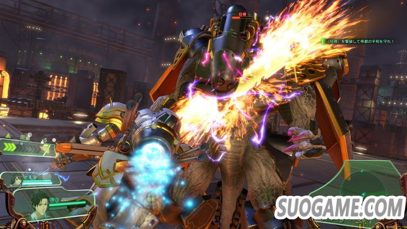 战斗部分则是非常标准的动作玩法,操作手感相对而言是比较追求爽快感的那种,虽然光武看上去笨重但控制起来还较为灵活,加速移动时也十分有速度感。每个角色的招式也都有独自的特色,神山就属于那种非常正统的主角类型,招式大开大合比较万能,而这次可以操控的女主角之一望月薊则是比较偏向空中作战,打一些飞行的敌人会比较好用,地面战就比较弱。基本上战斗部分的内容看视频就非常直观,这边就不再详述了。不过本作的战斗不单纯是与敌人交战,也会有一些需要依靠跳跃技巧或是墙壁滑行才能越过的障碍,有时候场景落脚点特别小非常容易掉下去,特别是在狭窄高台战斗时使用带冲刺效果的招式就特别容易冲出台子,需要十分小心。
