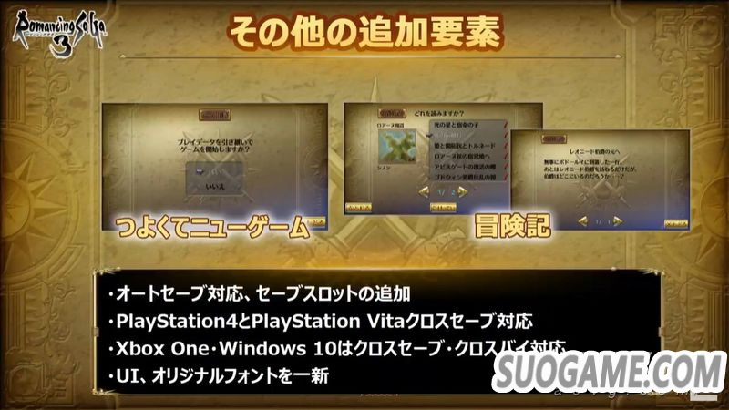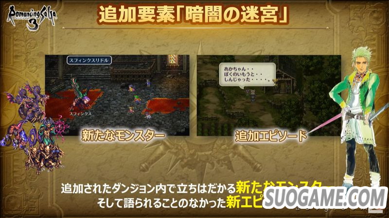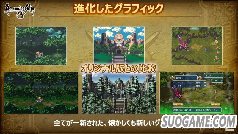 史克威尔艾尼克斯今日公开了《浪漫沙加3 高清版》相较原版的众多变更点,本作将于北京时间2019年11月11日推出,登陆PS4、PS Vita、Xbox One、Switch、PC(Steam/Win10)、安卓与iOS平台,售价3500日元。
