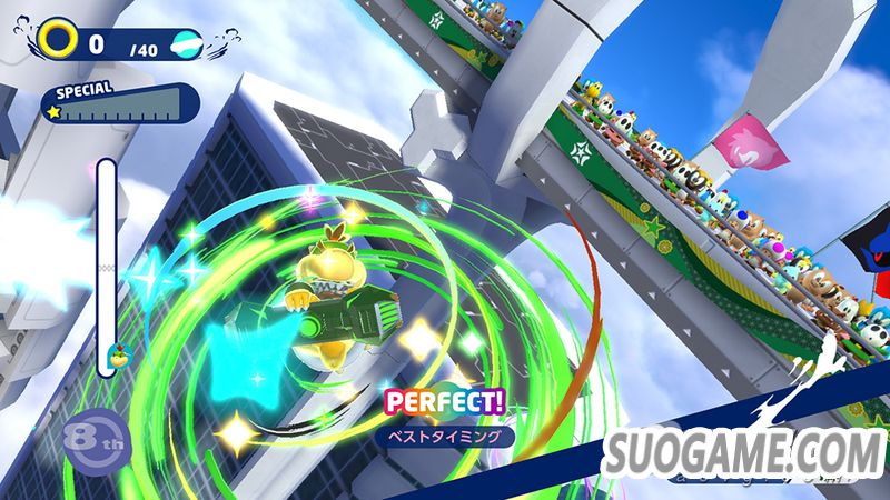 完成特别达阵后的射门模式中,要看准能量槽的位置踢出球形烟花。