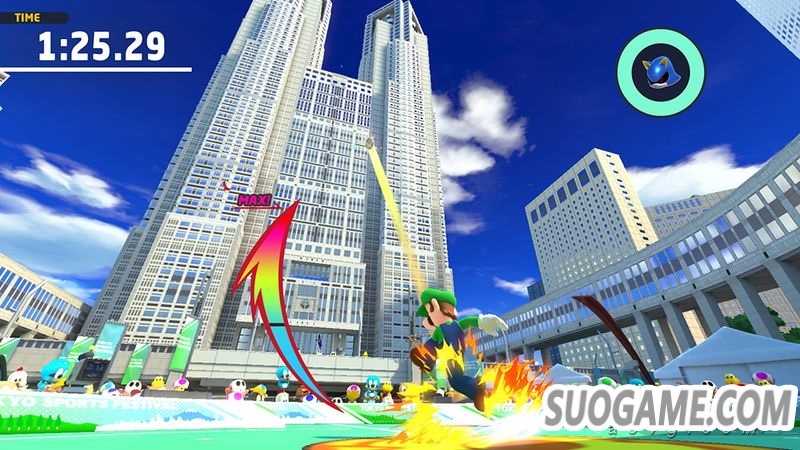■【小游戏「东京都厅舍擒抱&射门」】以东京都厅舍为舞台,操作路易吉和蛋头兵进行变种橄榄球的小游戏。