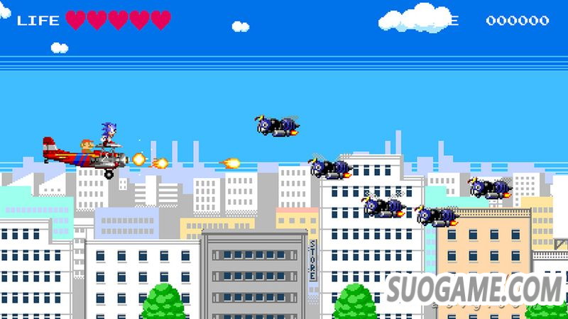 ■【小游戏「东京天空射击」】这是一个横版卷轴射击游戏,需要乘坐飞机和蛋头博士的大部队战斗。