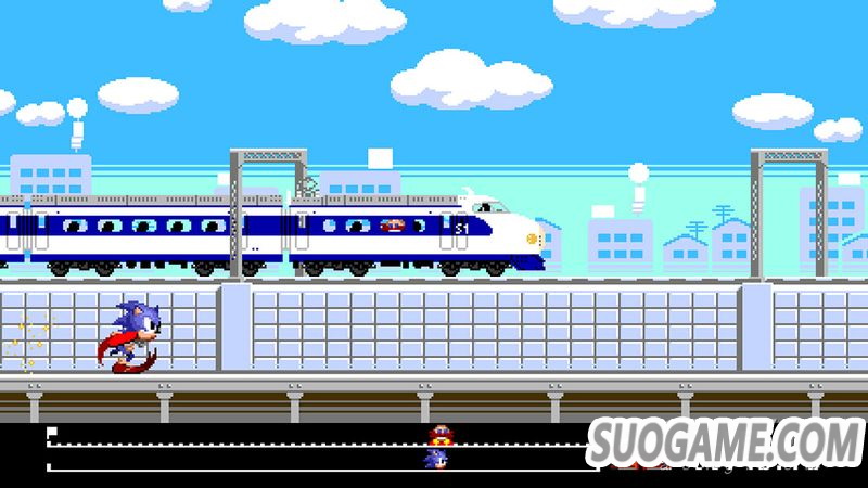 ■【小游戏「新干线疾跑」】这是一个横版卷轴跑酷游戏,索尼克追赶载着蛋头博士新干线。
