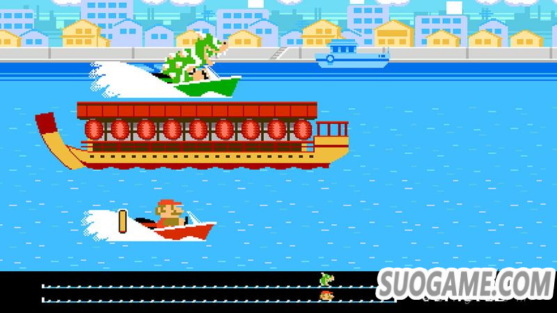 ■【小游戏「隅田川赛艇」】这是一个横版卷轴竞速游戏,马力欧和酷霸王乘坐小艇在隅田川竞赛。