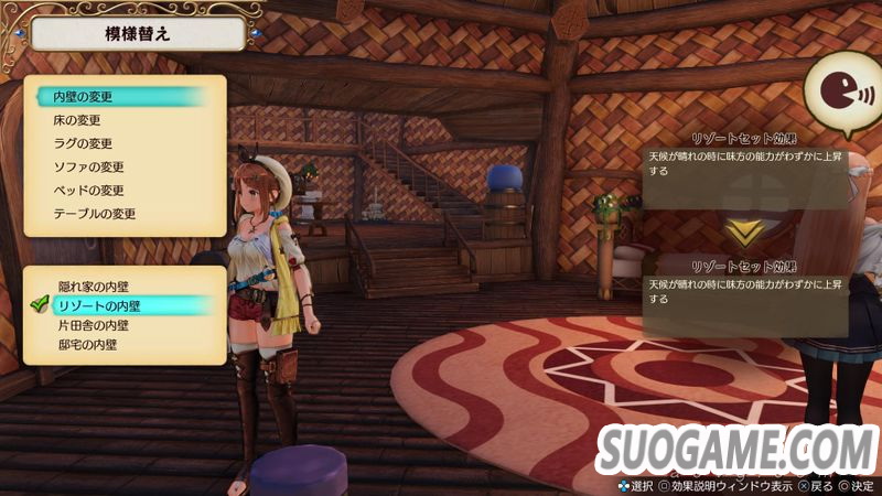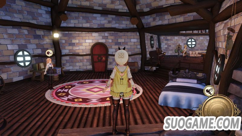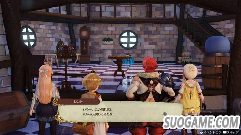 当冒险进展到一定程度时,就可以使用「秘密藏身处」当作莱莎一行人的据点。在「秘密藏身处」中,除了可以进行调合、存盘和读档外,还可以变更「秘密藏身处」的内装与外观!不同种类的零件中,部分零件可提升莱莎他们的状态,对接下来的冒险带来帮助。