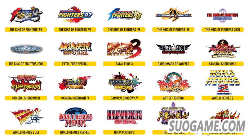 特色3:收录《拳皇》、《饿狼传说》等20款经典格斗类游戏。通过接驳其它的NEOGEO Arcade Stick Pro或NEOGEO mini PAD还可以进行对战。