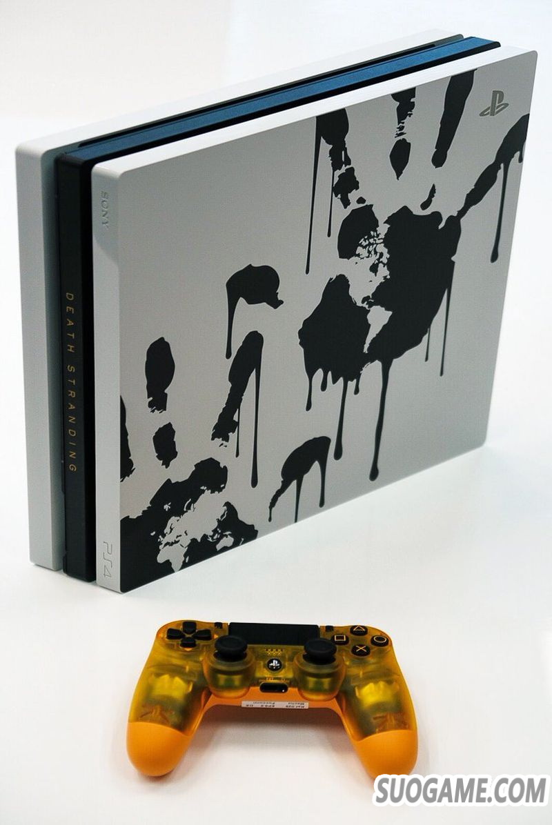 设计概念源自《DEATH STRANDING》游戏,这款全新的限定版PS4 Pro以白色哑面为基调,配上两个勾划出世界大洲地形的BT手印。为了替用户的家居娱乐设备带来一份非现实世界的感觉,套装中亦包括一个与游戏中的BB圆舱同色,橙色半透明的DUALSHOCK 4无线控制器。在游玩过程中,用户可轻轻摇动控制器,模拟亲手拿着BB圆舱的感觉。