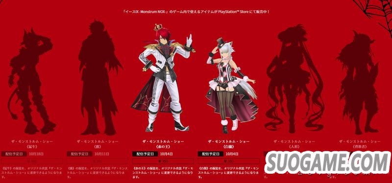 PS4《伊苏9》在官网上公开了发售后的DLC内容介绍,其中6位怪人将会有新的服装造型,单价350日元,10月4日会率先推出赤之王和白猫的服装。此外还有一些装饰品和道具等内容,会陆续推出。本作的日版即将于北京时间明天9月26日发售,中文版发售日未定。