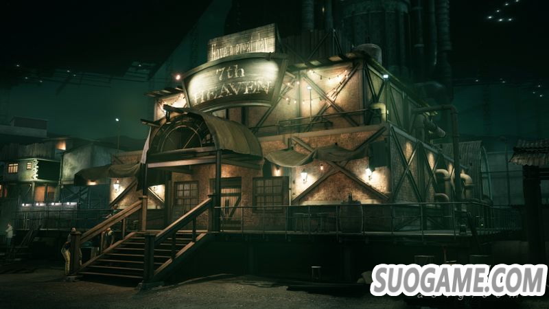 第柒区贫民窟的酒馆,每天晚上劳工们都会在这裡把酒言欢。招牌是调酒《星殒峡谷》和店员蒂法的笑容。墙上挂着飞镖靶,吸引贫民窟的飞镖高手互相较劲。打烊之后,这裡便会化为反神罗组织雪崩的祕密基地。