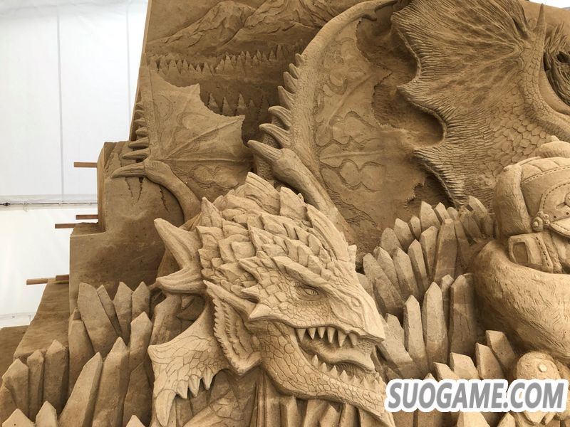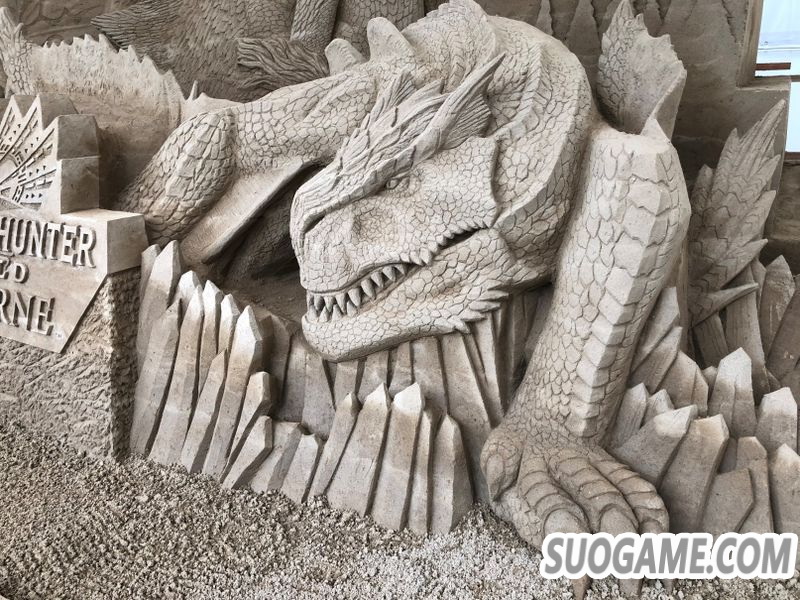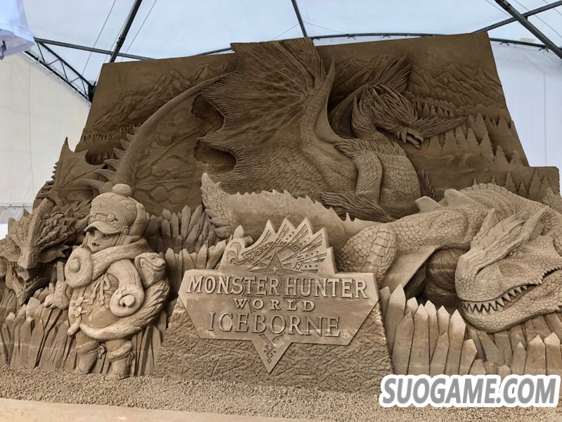 此前在《怪物猎人世界 Iceborne》狩猎解禁前直播活动中,提及的与鸟取市协力制作的巨大砂像已经制作完成,主题以《怪物猎人世界 Iceborne》中的雄火龙、轰龙、冰呪龙以及随从猫为主,该沙像将于北京时间9月28日~10月31日在日本鸟取市「风纹广场」进行展示。