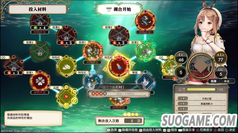 新的炼金面板对于顶级道具的制作也更加友好。工作室系列在游戏性上的终点就是做出最强的装备和道具。这个过程是恼人的,有时候你得查看攻略才知晓制作方法。新的炼金面板没有这种苦恼。就像上面所说的,你总是有前进的空间,明确地知道自己需要什么。而且获得素材的品质是随机的,如何继承、如何选择会成为一个恒久的课题,你总是可以在过程中寻找到更优秀的替代品。