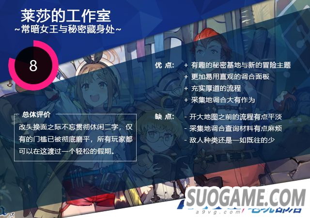 A9VG为《莱莎的工作室》评分:8/10,完整评分如下: