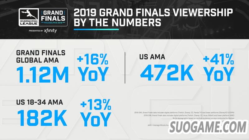 动视暴雪发言人在电话会议中表示,他们以及合作伙伴并没有为总决赛启用更多的推广渠道,因此可以说这份数据是相对真实可靠的。发言人还提到,除了总体增长以外,OWL联赛还是目前唯一在18~34岁青年群体中取得观众数量增长的体育赛事。