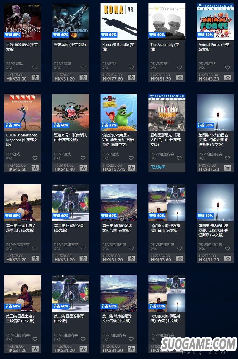 *1 PS VR游戏(光盘版)优惠不适用于LOG-ON。游戏数量有限,售完即止。
