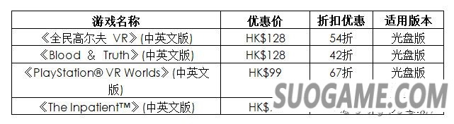 此外,由即日起至10月20日期间多款精选PS VR光盘版游戏以低至42折起发售*1,详情如下: