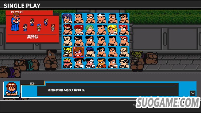 一直保留原汁原味的模板,势必不是一口可以一直吃的饭,因此本作在原有的基础上针对游戏的诸多系统进行了修正,在弥补了一些原本缺憾的同时将核心的格斗元素进行了完善,同时在场景、角色等方面进行了强化, 在初次进入游戏时一个个经典的角色映入眼帘,多少可以唤醒曾经与小伙伴一同通关热血时的情景,可能对于有情怀的玩家来说,这种扑面而来的经典元素会让你有一些感动,但对于曾经玩过《热血乱斗行进曲SP》的玩家来说,这些内容可能只是单纯的复读了。